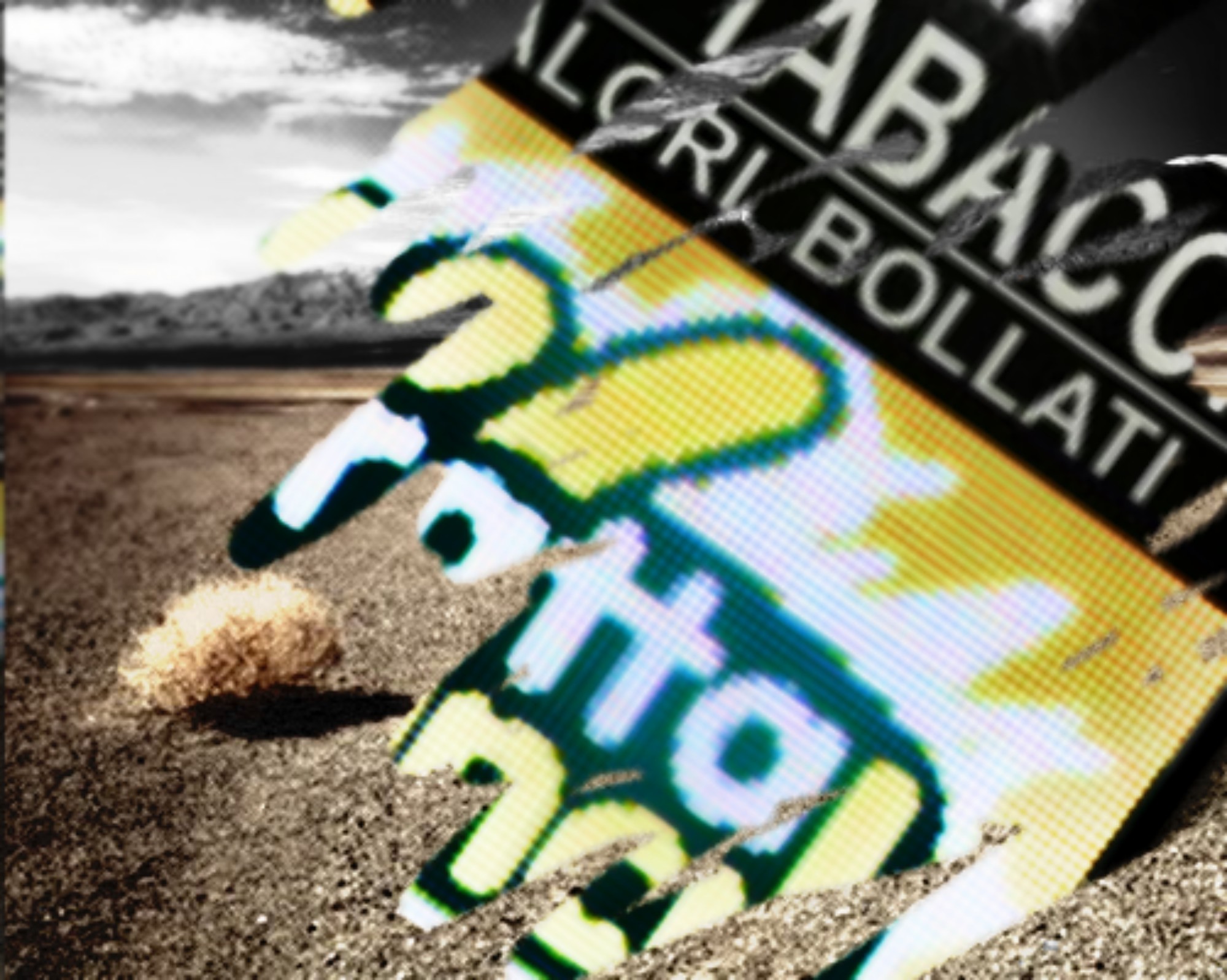 Il tabaccaio ora ci osserva inquieto. Così gli altri avventori del negozio. Non vola una mosca, mi pare che alle nostre spalle siano comparse metaforiche balle rotolanti, inseguite dal vento della prateria. Lontane, eteree, all’orizzonte – che in questo modesto negozietto fisserei più o meno tra la vetrina delle sigarette e il deposito di scatoloni sulle mensole in alto, dietro il bancone dove sta la cassa.